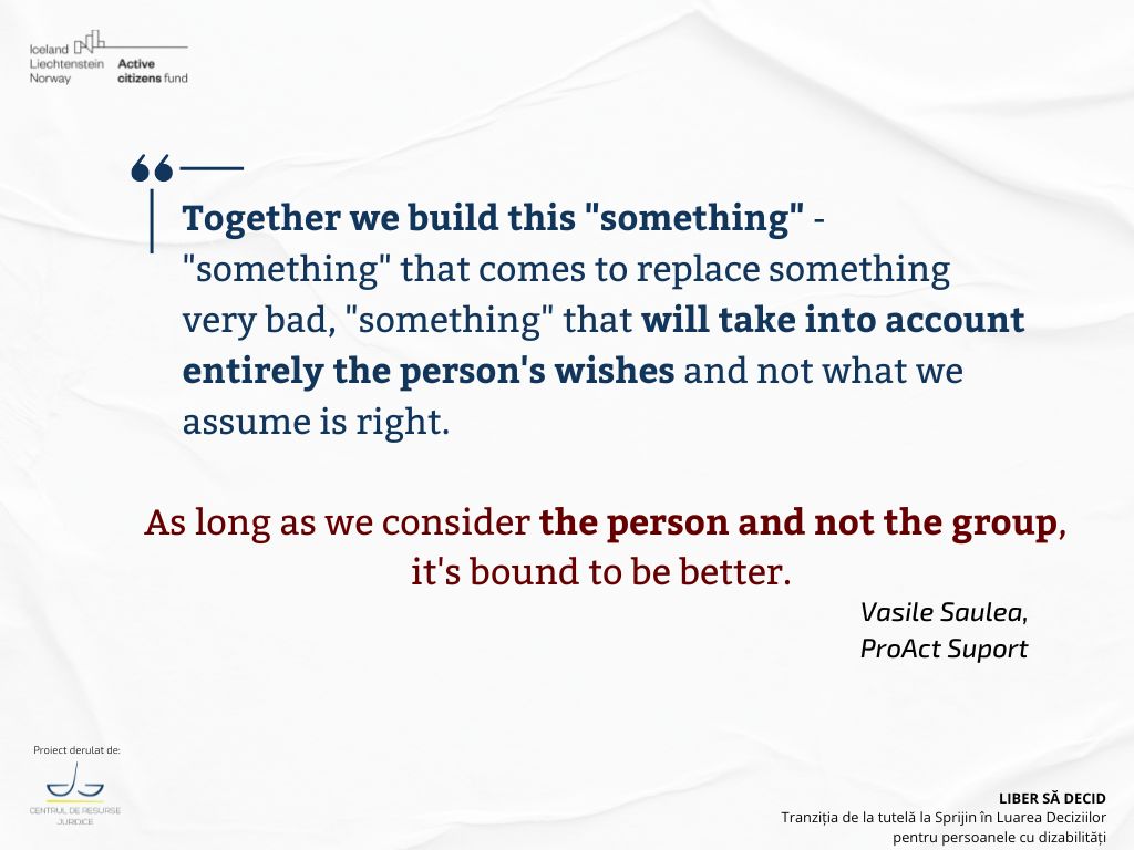The course “The right to decide – piloting regional initiatives” is organised by the Centre for Legal Resources (CLR) in the framework of the project “Free to decide. Transition from Guardianship to Decision Support for People with Disabilities”, with the financial support of Active Citizens Fund Romania, a programme funded by Iceland, Liechtenstein and Norway through EEA Grants 2014-2021.